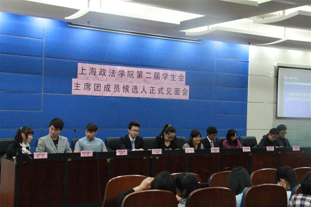 4月17、18日中午,校第二次学代会筹委会在庸夫楼112举行我校第二届学生会主席团成员候选人正式见面会,各院学生代表主动前往现场观摩、提问。