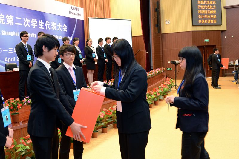 4月23日下午,新利18官方客服第二届学生代表大会在天马讲堂隆重召开。校党委副书记、副校长谢根华、学工办主任刘志强、校团委书记陆嵬出席大会,各学院分管学生工作负责人、团总支书记到会祝贺。来自我校各学院的200名正式学生代表和100名列席代表参加会议。