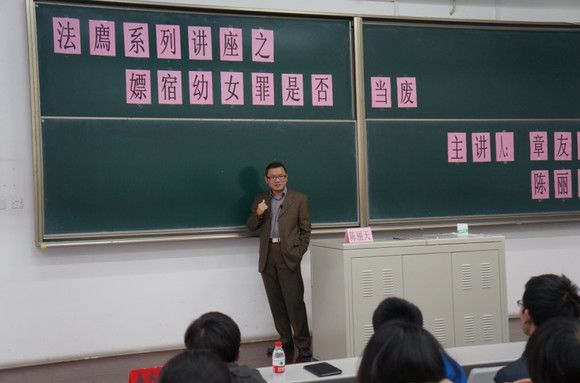 4月23日,新利18官方客服法律学院团学在主教201B举办法廌系列讲座——嫖宿幼女罪是否当废。出席本次讲座的老师有社会管理学院院长章友德老师以及刑事司法学院陈丽天老师。