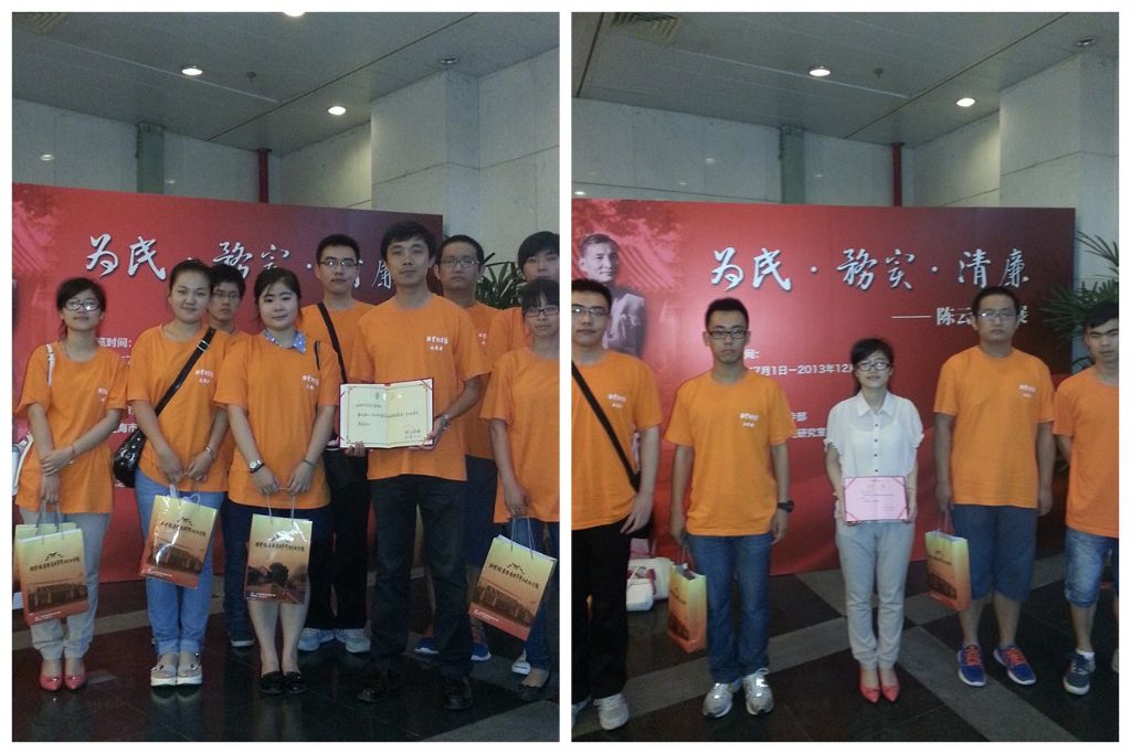 7月1日上午,我校20名青年志愿者代表赴青浦参加”陈云纪念馆志愿服务基地揭牌仪式”。陈云纪念馆就2013年上半年志愿服务工作作了表彰,我校陈云故居青年志愿者团队获得“2013年上半年度陈云纪念馆志愿者工作先进集体”称号;我校国际法学院学生沈利晴获得“2013年上半年度陈云纪念馆志愿者先进个人”称号。