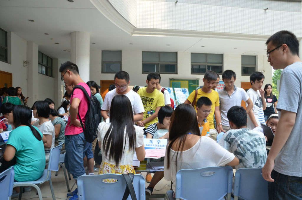 法律学院团学的成员几天前就为迎新生做好了充分的准备,导生一早便在主教A座底楼等候每一位远道而来的新生,为每一位前来报道的学生进行登记,热心的解答新生们的疑惑,他们辛勤的工作,周到的服务,给学弟学妹们留下了良好的印象。