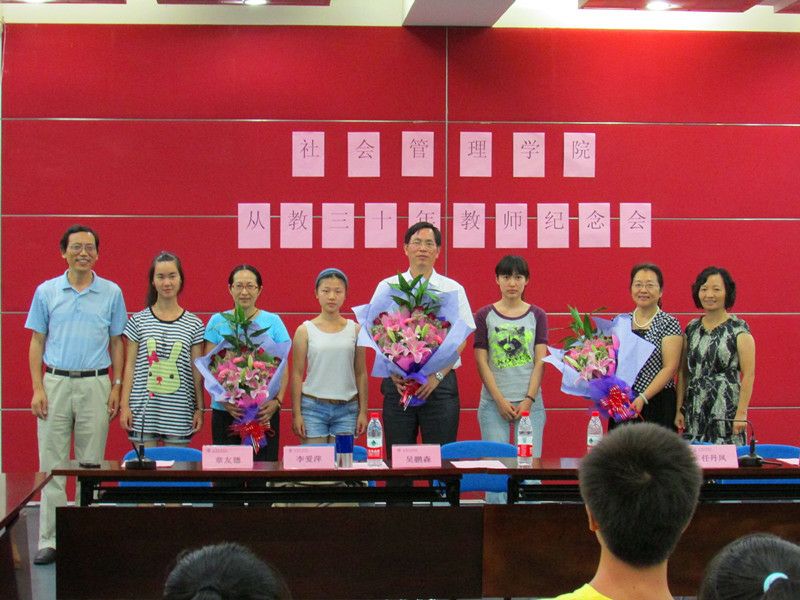 9月24日下午,社会管理学院在信教召开纪念会,表达对5位社会管理学院从教30周年教师:校长金国华教授、吴鹏森教授、陈晓敏教授、李爱萍教授、任丹凤副教授长期奉献教育事业的衷心感谢和真挚祝福。学院全体教师及学生代表参加此次纪念会。会议由章友德院长主持。