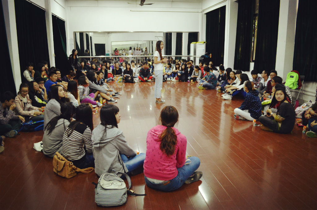 2013年10月15日下午4点,新利18官方客服艺术团在学生活动中心展开了第一次全团大会。大会全程气氛融洽活动丰富,艺术团田佳老师以及所有成员齐聚一堂,增进彼此之间的了解和感情。