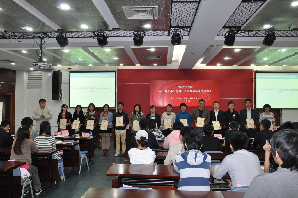 会上,首先由校团委负责老师总结了我校今年暑期社会实践开展情况。今年我校暑期社会实践以“实践激扬青春志 奋斗成就中国梦”为主题,经过前期项目申报、个别访谈、可行性分析、严格筛选、立项反馈等工作环节,校团委最终确定了6大类41个校级重点暑期社会实践项目66个院级重点项目,投入经费超过6万余元,分赴全国16个省市开展实践活动,相比去年,我校今年暑期社会实践项目数量增长40%,活动涉足省份增长11%,覆盖面增长60%,指导教师投身数量增长20%,活动种类数量增长23%,经费投入增长50%。在宣传方面,各团队均开通腾讯微博,共发布微博436条,法律学院、社管学院等实践团队微博被上海志愿者官方微博转发;校团委从实践活动开展至结束,有4篇活动新闻稿被团市委暑期社会实践简报刊登,经管学院社会实践项目更是吸引了团市委副书记、学校部长等领导赴实地看望慰问。