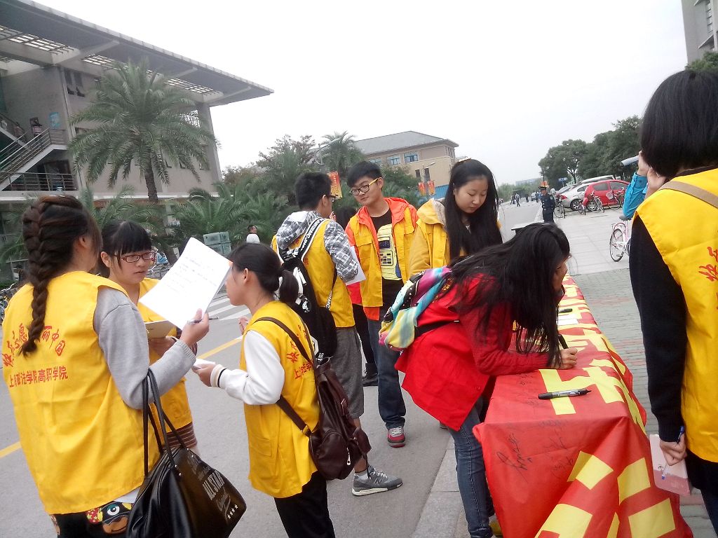 10月17日的中午11时30分,高职学院社会实践部联合组织部于世博广场附近共同举办了一次关于“低碳生活”的绿色环保宣传活动。