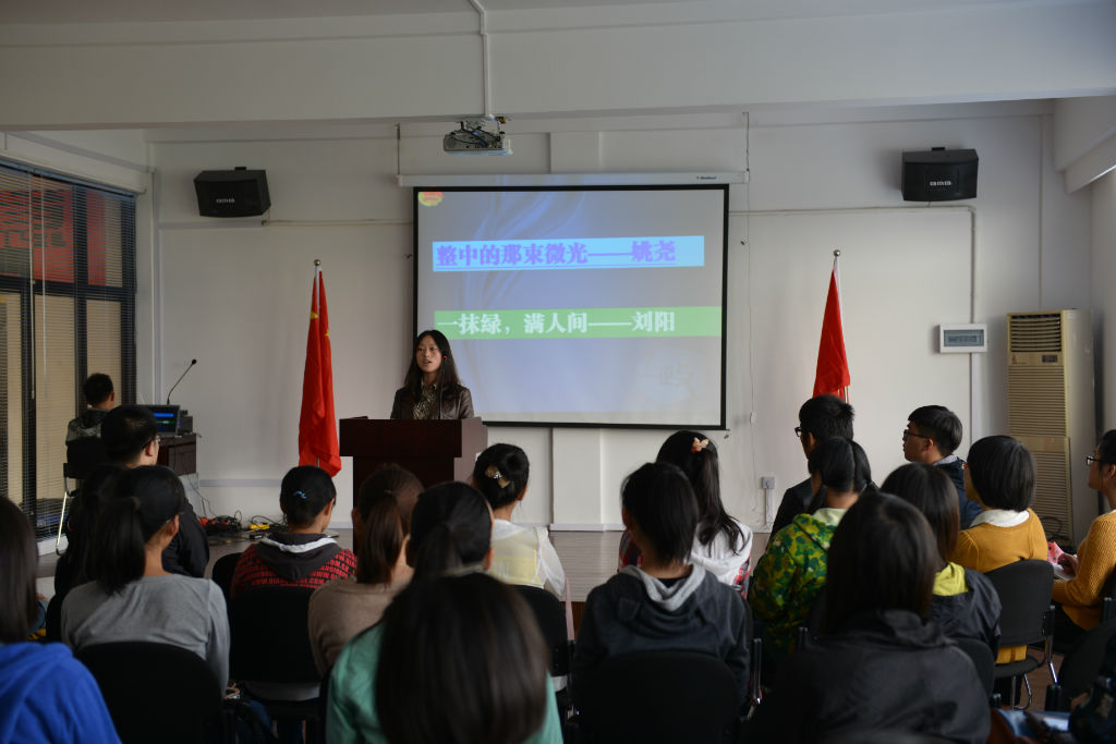 两位同学围绕着志愿工作与实践工作,向同学们讲述了自己的公益历程。姚尧同学以“胸中那一束微光”为题讲述了今年暑假他难忘的雅安之行。他们所在项目给共青团芦山县委员会带去了新利18官方客服为支援雅安地震筹集的特殊团费两万余元,同时也描述了他和他的队友们在雅安灾区的见闻,感叹灾区人民坚强乐观的态度。刘阳同学以“一抹绿满人间”为题,分享了她自高中时起参与绿色公益、参与保护自然项目的成长历程。从项目前期的繁琐准备,到项目中克服的种种困难,到最终获得满满收获,为我们讲述了她们前往贵州遵义金群小学支教的经历。