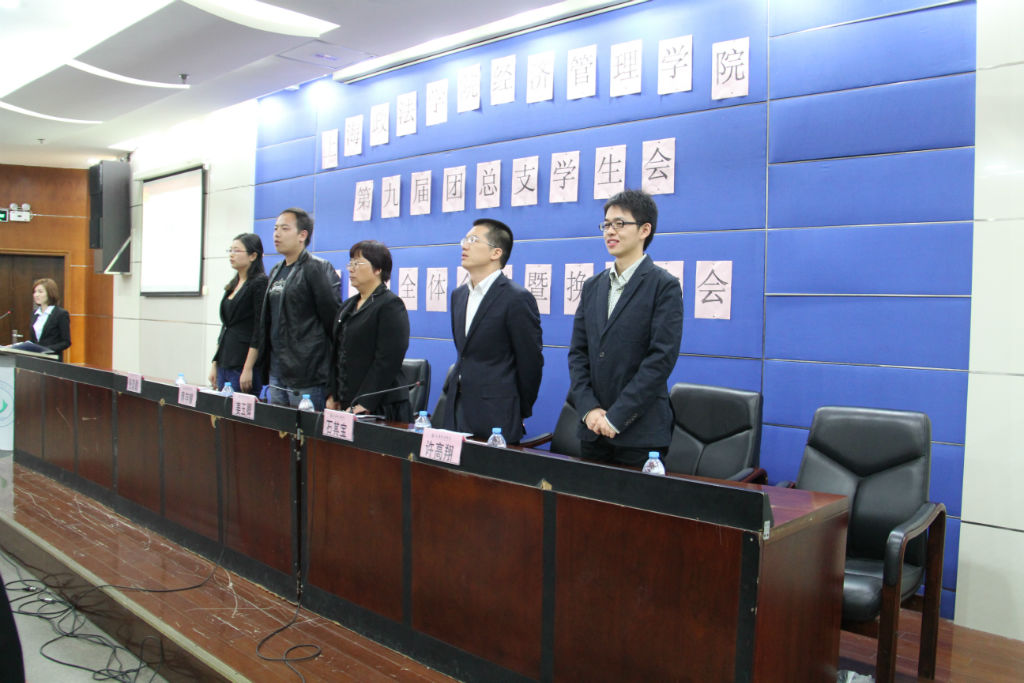 本次大会第十一项为团总支学生会11个职能部门暨“组织部,社会实践部,宣传部,办公室,人力资源部,宣传策划部,外联部,学术部,文艺部,体育部以及创展部”对其近期工作进行总结报告。本次换届大会的最后一项议程为经济管理学院党总支书记姜玉卿老师致词。在此姜老师毫不吝啬表达自己对本次大会的赞赏与感动。并且希望大家能矢志不渝的面对困难与挑战,解放思想,去改革,去创新。