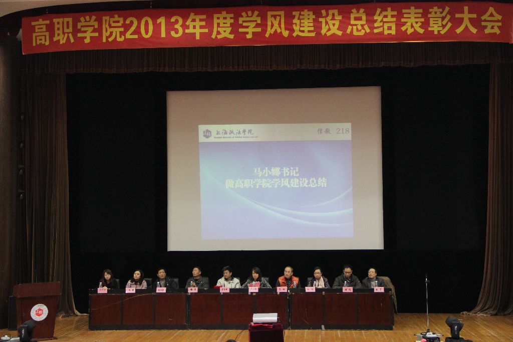 12月24日下午1点,高职学院团学承办的高职学院2013年度学风建设总结表彰大会在庸夫楼218召开。出席会议的领导有高职学院院长陈剑峰教授、高职学院党总支书记马小娜老师、学工办副主任彭辉老师。高职学院全体教职工和学生都参加了会议。会议由马小娜书记主持。