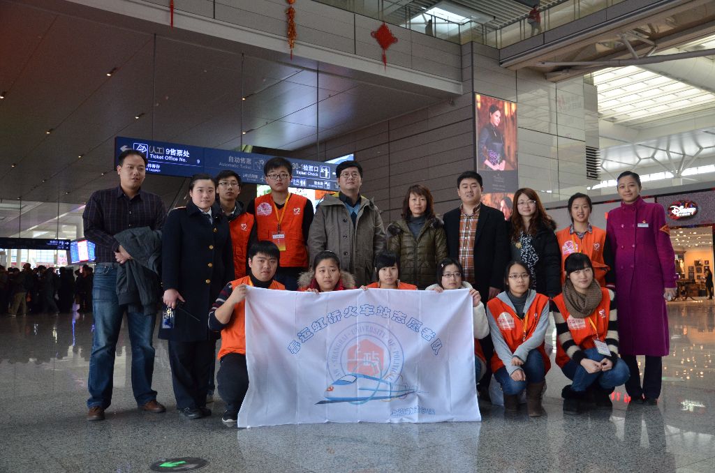 寒假虽至,我校2014年大学生寒假社会实践活动正在如火如荼的开展中。1月17日,校团委班子和相关学院领导一起赴铁路上海南站及虹桥火车站看望慰问我校参加2014年寒假社会实践服务活动的团队,为志愿者们送去补给品。