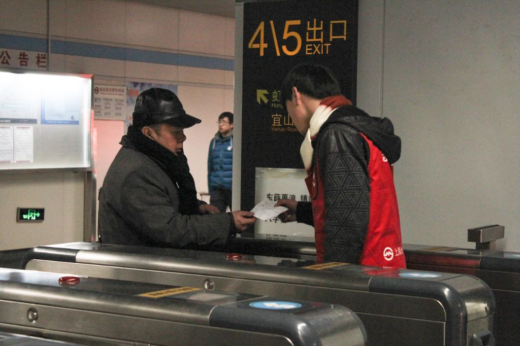 自1月20日起,来自19所高校的53名志愿者就开始分批上岗。严寒的天气并没有降低志愿者高涨的热情。在日常工作中,志愿者分工明确,自动售票机、各出站口、列车候车区域位置均有人员在岗,积极配合地铁站做好文明提示、宣传、引导等工作。据了解,七宝、徐家汇、打浦桥每日的客流量较大,七宝站的志愿者们表示在活动中时常帮助返乡乘客搬运大件行李,大大缓解了进出口拥堵问题,提高的地铁站的服务质量,得到了乘客的好评;徐家汇站为上海地铁枢纽之一,此站的服务更多的是指引,引导乘客选择正确的出口及转线路线;打浦桥站的志愿者们表示此站的服务侧重指引及帮助乘客使用自动售票机,此外,该站的外国友人相对较多,简单的英语交流成了志愿者们的必备功课。