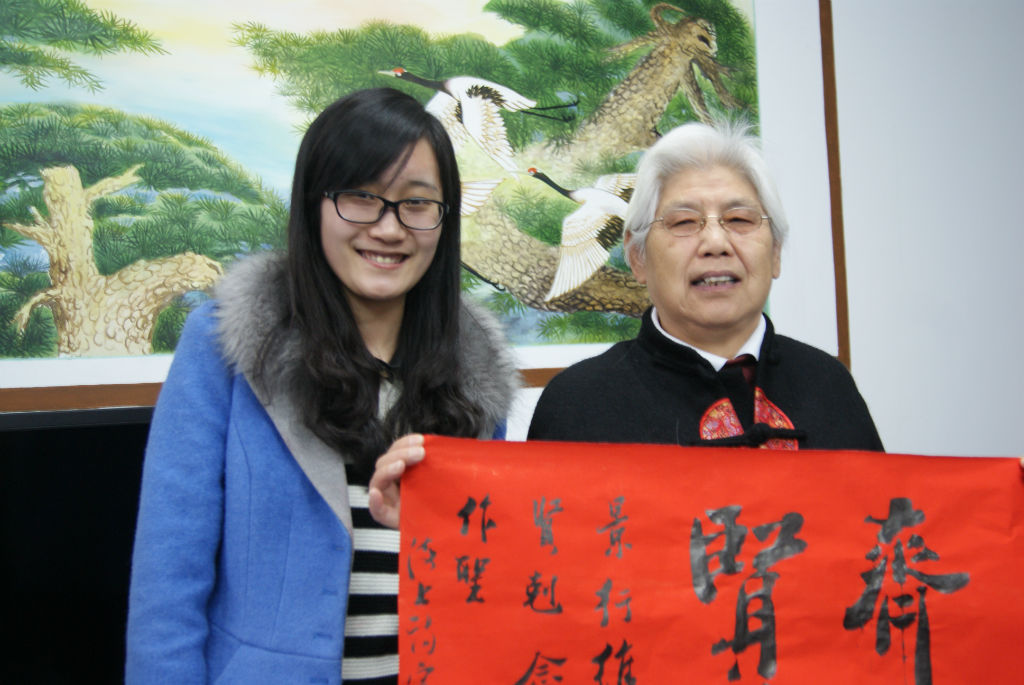 表演接近尾声之时,志愿者们精心准备了神秘礼物——书法社社员的优秀书法作品。老人们对此表示了欣喜与感谢。情暖两相传,院方回赠了志愿者们一幅斗方,美好的寓意代表着长辈们对年轻热血的志愿者们最诚挚的祝福。活动结束后,相谈甚欢的老人们与志愿者们在不舍之余互诉了离别之意。