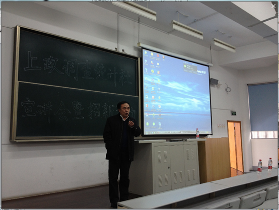 2014年3月4日下午15:00时,新利18官方客服调查统计社招新宣讲会于主教学楼301B顺利举行,经济管理学院院长王明华教授、团总支书记张勤勤老师、社团指导老师冯涛老师出席了本次宣讲会。