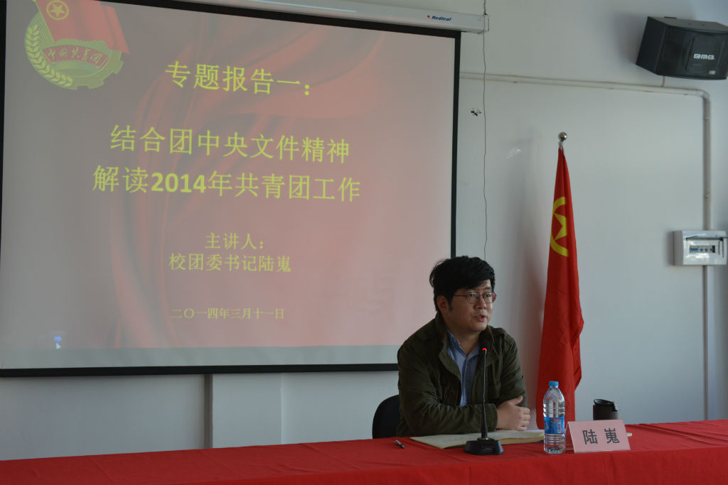 开班仪式结束后,校团委书记陆嵬老师为第四期团校学员带来了专题报告第一讲《结合团中央文件精神,解读我校2014年共青团工作》。陆老师采用互动交流的方式,引导学员们共同思考交流,在新形势下,共青团工作如何真正为广大团员接受并喜爱,如何打造高品质、有共青团特色的团学活动,如何让团学活动惠及到更多的同学。通过这种互动交流,不仅使学员了解了2014年我校共青团工作的重点,还使他们开拓了团工作视野,对团学工作有了更深的认识和思考。