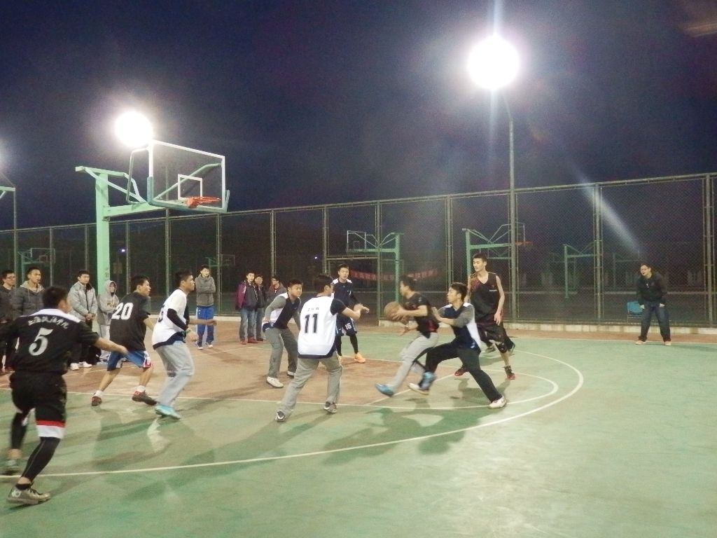 2014年3月20日18点,天色已逐渐变暗,然而在篮球场上,经济法学院同社会管理学院的篮球比拼却正在进行。