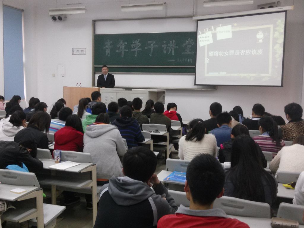 4月1日下午,由我校刑法老师陈丽天老师开展的“嫖宿幼女是否应该取消”的主题讲座在主教顺利举办,现场座无虚席。显然,这个事实问题吸引着众多同学的关心。