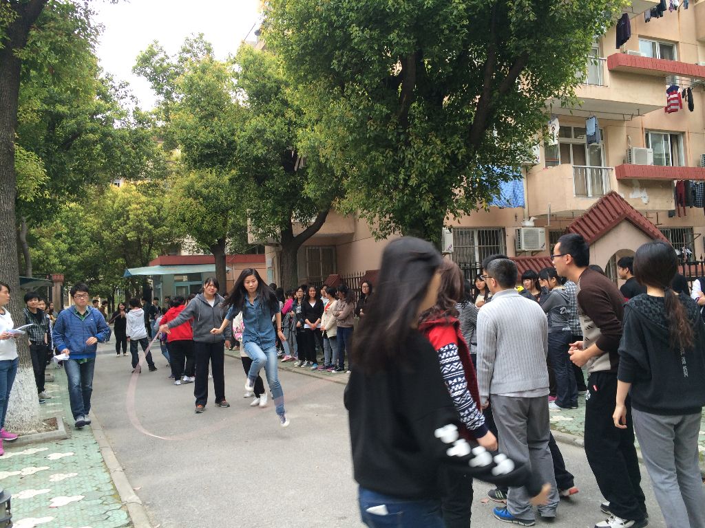 比赛开始后,平日里安静的小区顿时热闹非凡,加油声和计数声此起彼伏。寝室组采用短绳比赛,参赛寝室成员在三分钟内所跳次数总数为成绩,班级组则是采用长绳比赛,三分钟内通过的人数最多者为胜。经过将近五十分钟的激烈角逐,最终10号楼 402b等6个寝室获得寝室组前六名,班级团体冠军则由法律事务1332夺得,法律事务1331和司法助理1331班分别获得亚军和季军。