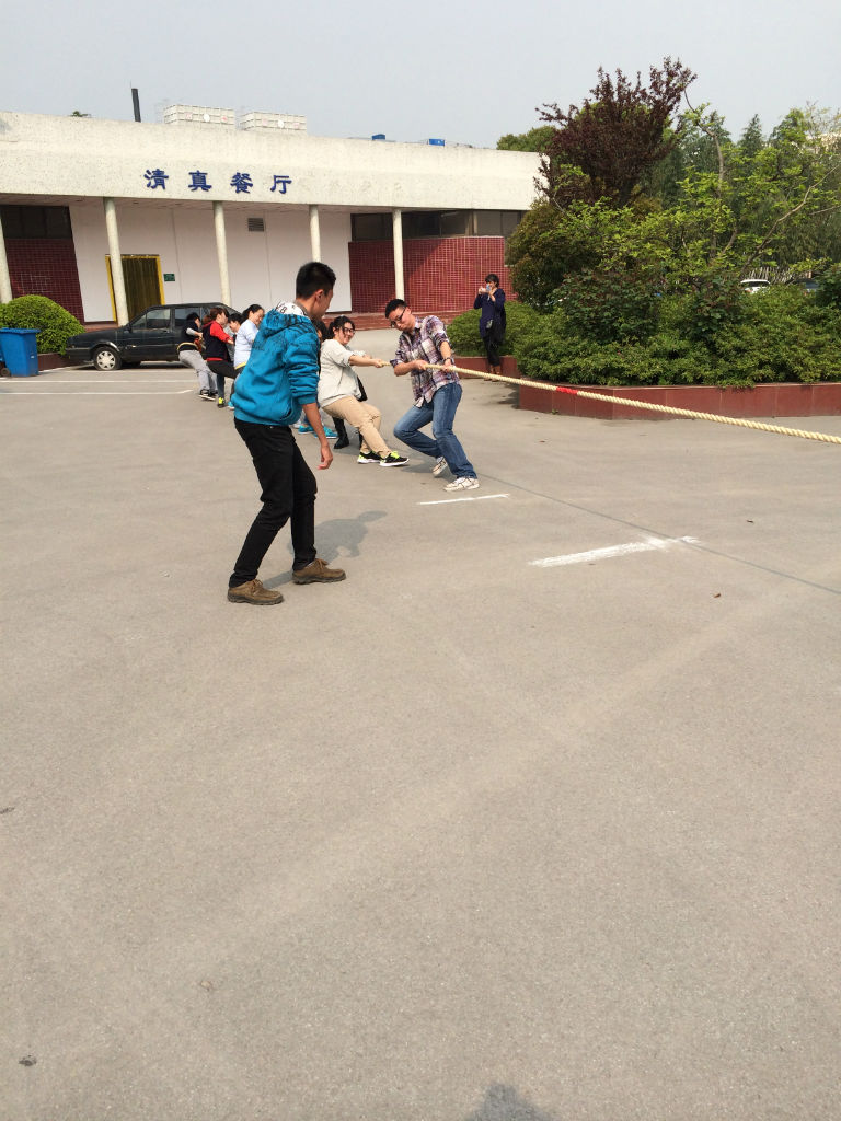 本次团日活动以四个班进行拔河比赛的形式举行,分为8日的初赛以及15日的决赛。各班团支书作为班级代表通过抓阄分为两组,分别是1班对3班,2班对4班。随着裁判员的一声令下,初赛正式开始,参赛同学在“1,2,3拉”,“1,2,3拉”的口号下,一起向后仰,一起使劲往后拉。同学都拔的汗流浃背,满脸通红。场外的拉拉队也一个劲地喊着“加油,加油!”。那“加油”一声比一声高,周围的气氛也越来越活跃,同学们的情绪也越来越激动。麻绳中间的红绳一会儿向左移,一会儿向右移。现场双方力争,不甘示弱。2班与4班在第二局分出了胜负,而1班和3班在第三轮中才分出胜负,由此可见本次拔河比赛过程中的精彩之处。最后,1班和2班经过激烈的角逐,分别在初赛中获胜,继续为15日的决赛做准备。
