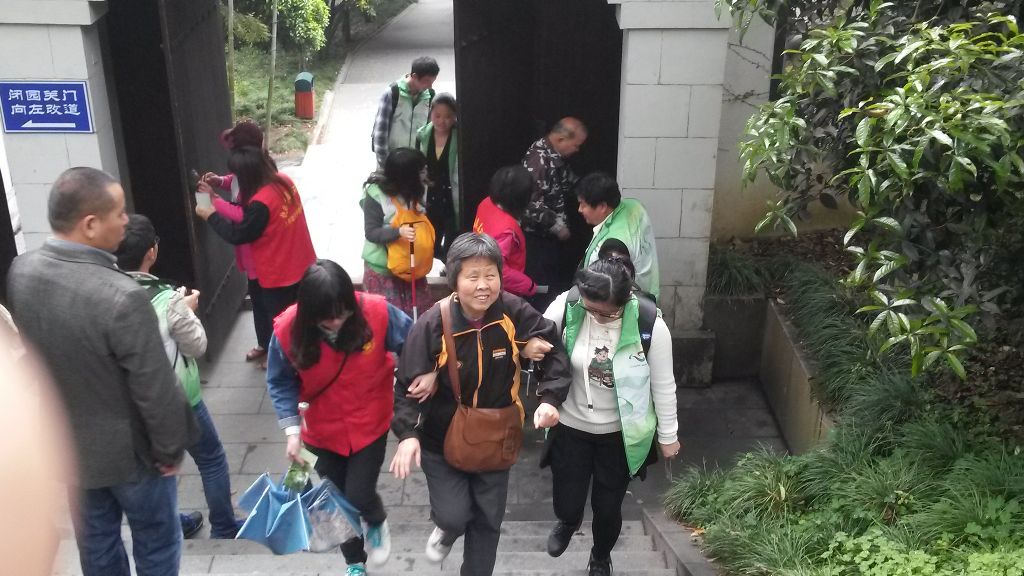 早晨9点,盲人们准时到达佘山国家森林公园。高职学院求索志愿者队4名志愿者早已等候在公园门口。整个志愿活动期间,志愿者细心地搀扶着盲人们,一边带着他们爬山,一边为他们讲解沿途的风景。中午休息时,大家坐在亭子下分享准备好的食物,边吃边聊。志愿者发现,盲人虽然眼睛看不见,但他们会用心灵去感受美景,感受生活。为了表达感谢,盲人们合唱了一首《爱的奉献》。志愿者武洁钰同学回唱了首《明天会更好》。伴随着欢笑声,盲人佘山自助游志愿者活动圆满结束。