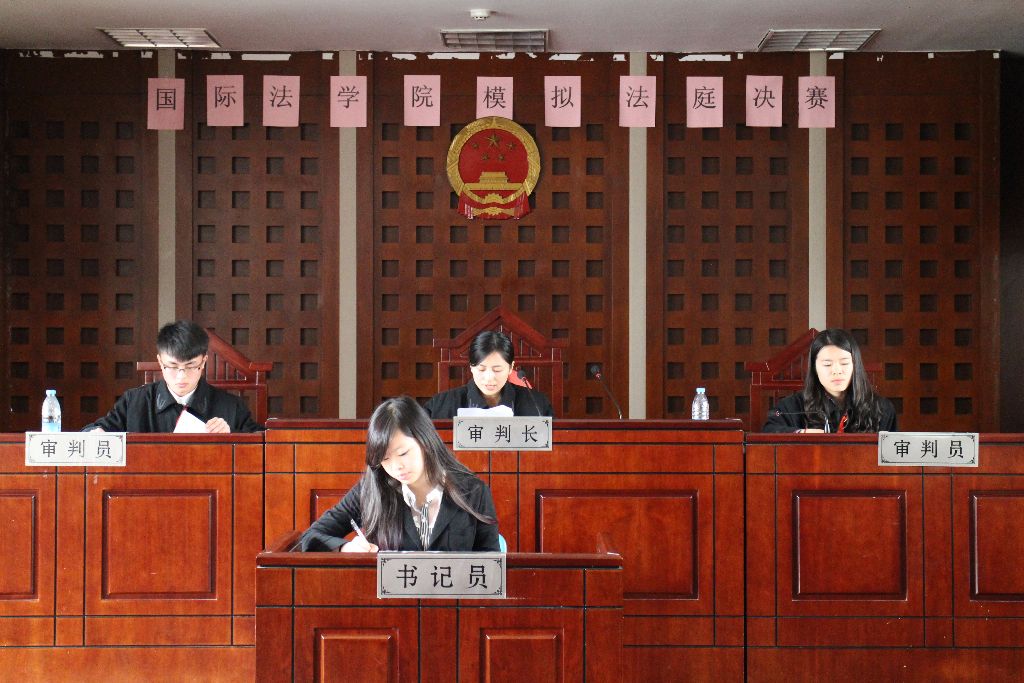 为了响应团委就业促进的号召,2014年4月10日至15日,国际法学院举办了模拟法庭比赛,分为初赛、复赛、决赛。本次比赛得到了国际法学院学生热烈响应,有共近30组学生参加。经历了9场初赛和6场复赛,决赛于4月15日在庸夫楼模拟法庭举行。担任本次比赛的评委有国际法学院盛红生教授、刘恩媛副教授、石俭平副教授、齐萌副教授以及法律学院张进德副教授。