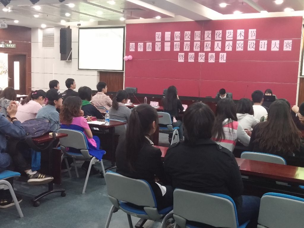 2014年5月6日星期二下午13:00在信教101成功举办了第二届校园文化艺术节——经济管理学院“流年素写一世青春”私人小窝设计大赛的决赛暨颁奖典礼,经管学院团总支副书记陈思奇,创展部副部长姚少冰,文艺部部长何振福以及17、8号楼的宿舍管理员作为评委纷纷到场。