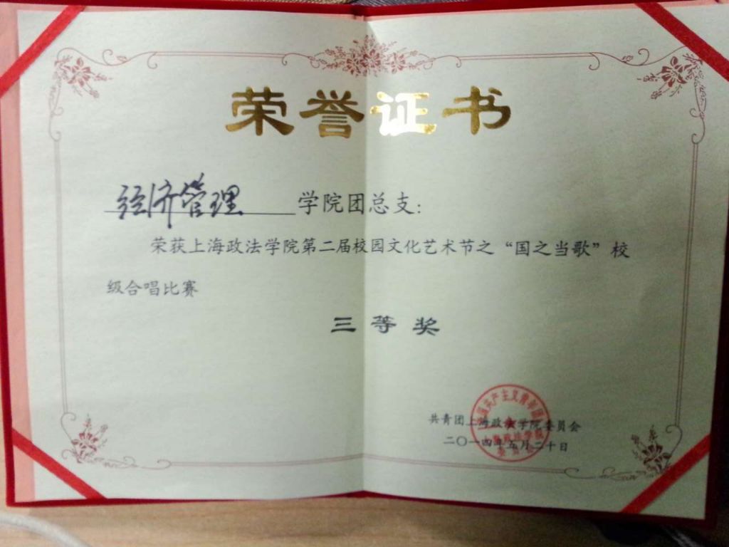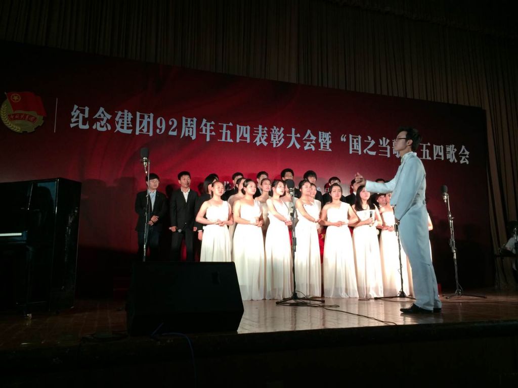 2014年5月27日下午14:00点整在信教218成功举办了第二届校园文化艺术节之“国之当歌”校级合唱比赛,经过激烈的角逐,我院在比赛中喜获“三等奖”。校团委书记陆嵬老师,校团委副书记孙留华老师,艺术团指导田佳老师与高木梓老师作为评委出席现场。