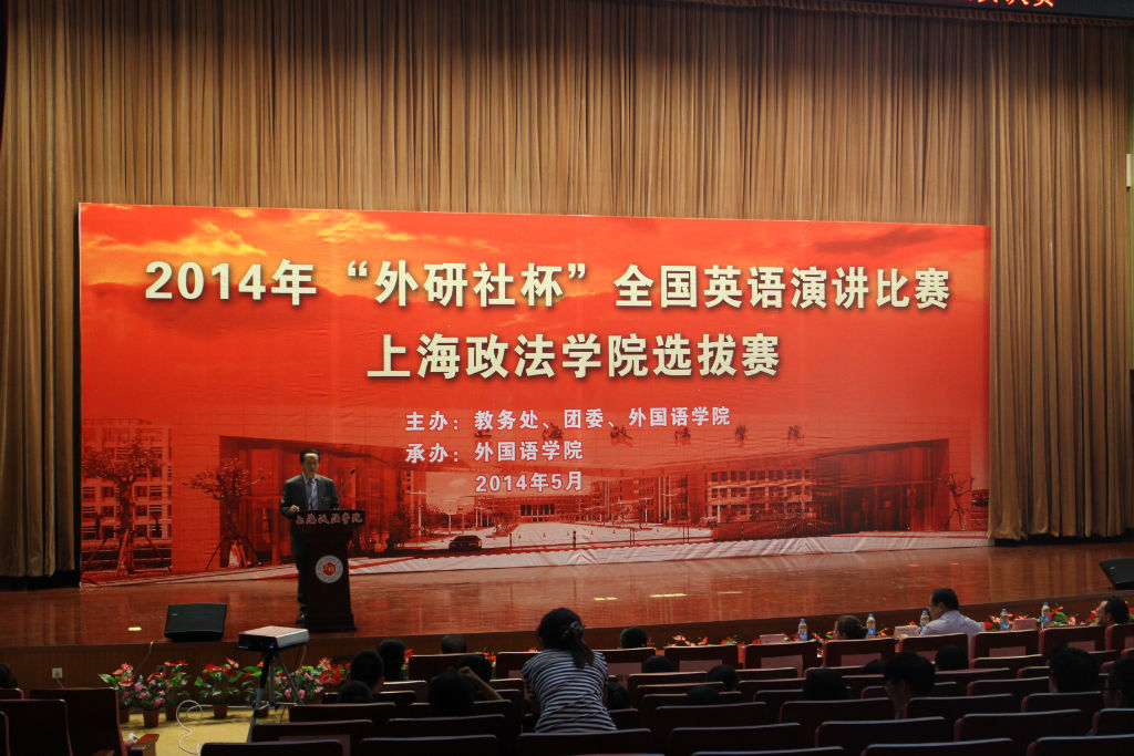 2014年5月27日晚6点30分,2014年“外研社”杯全国英语演讲比赛新利18官方客服选拔赛在天马讲堂隆重举行。副校长关保英教授、外国语学院常务副院长欧阳美和教授、校团委书记陆嵬老师、校团委副书记孙留华老师、外国语学院院长助理徐丽红老师、王燕教授以及两名外教莅临观赛并担任评委。各二级学院学生工作负责人及团总支书记也应邀作为嘉宾前来观赛。