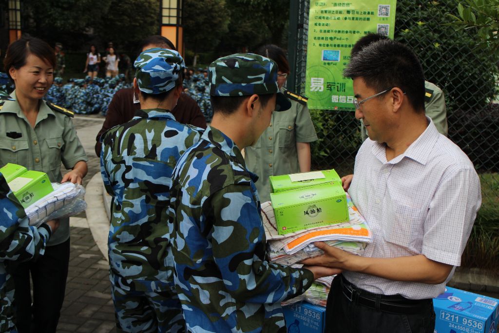 随后,陈剑峰院长、马小娜书记共同将学院为大家准备的饮用水、毛巾、防暑降温药品等慰问品发放到师生手中。