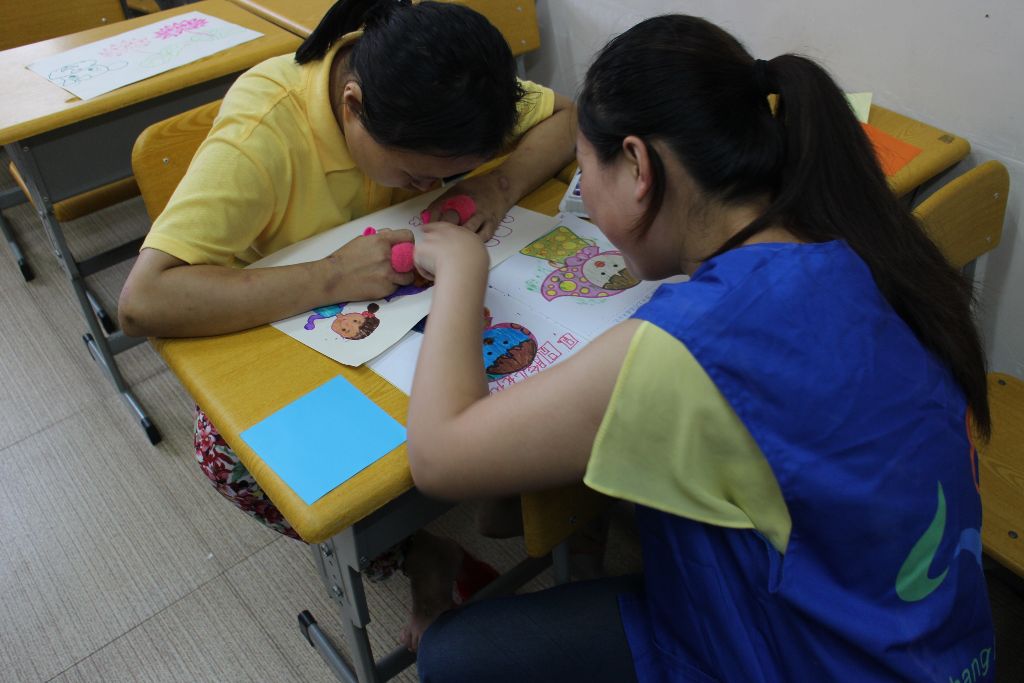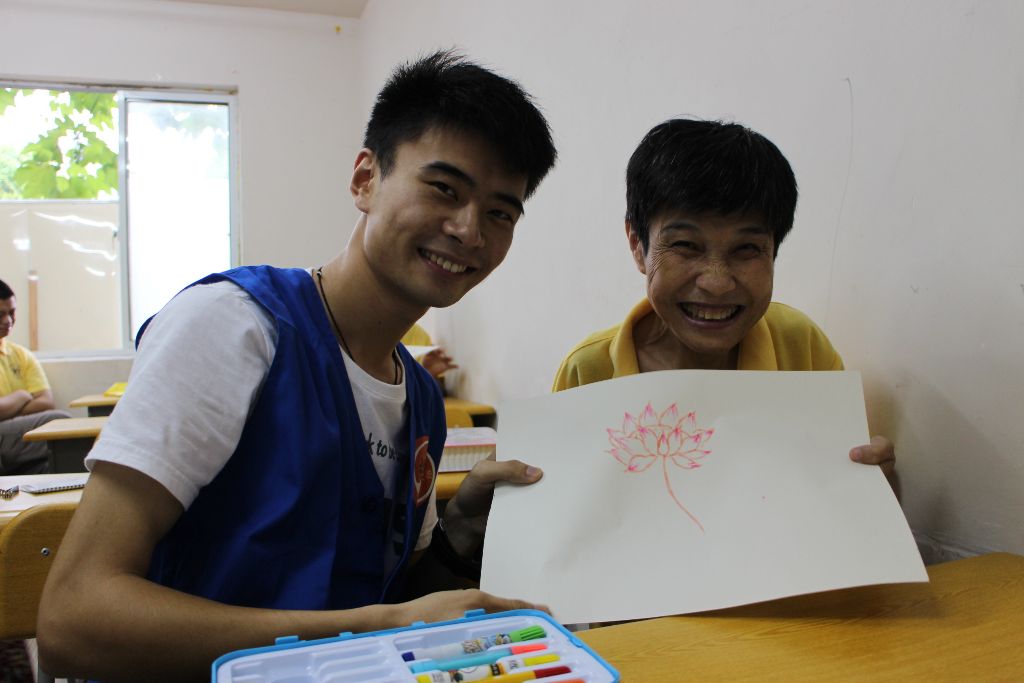 为了拉近智障人士和志愿者的距离,志愿者们陪同他们一起表演,并教他们画画、折纸。大家一起度过了愉快的半天时光。离别时“小朋友”叮嘱让志愿者们常过去看他们,在场志愿者难免有些痛惜和心酸。