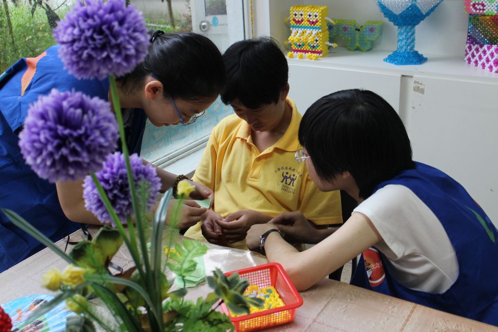 为积极响应和落实团委“大力开展扶残助残”的号召,8月17日,高职学院志愿者们前往闵行悦苗疗育园,携手挚光公益在园内开展助残活动。园内的“小朋友”年龄大小不一,但他们的智力却和5、6岁的孩子相似。