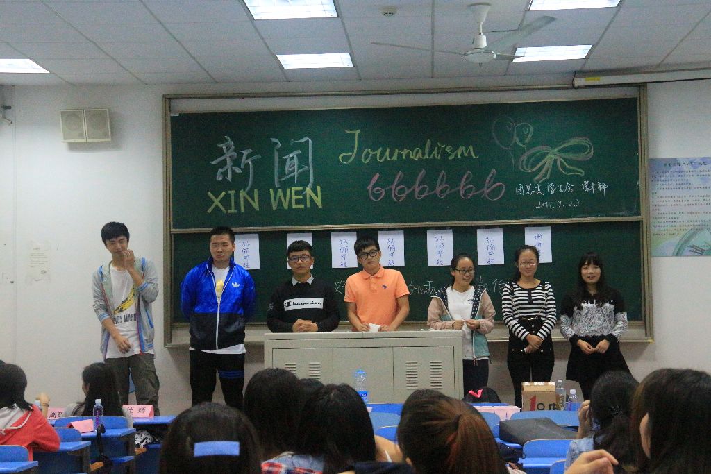 2014年9月22日星期一,我院法制新闻1441与汉语言文学1441于庸夫楼307、308教室展开了新老生见面会的活动。大二、大三的前辈们受邀来到活动现场,为两个班的大一新生答疑解惑,指引刚刚开始的大学路。