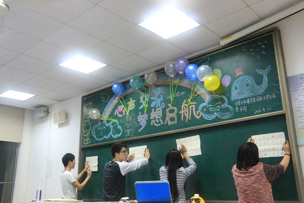 在学术部部长的带领下,从下午起两个班就开始做着各项准备,大一的同学们一起布置会场,准备游戏道具,主持人也细心地讨论着活动的各个环节,只待晚上新老生们齐聚一堂。参与此次活动的学长、学姐有法制新闻班的周翊宸、汪嫣、周砚清与汉语言文学班的杜晟、卢名扬、胡方旭等十二人。