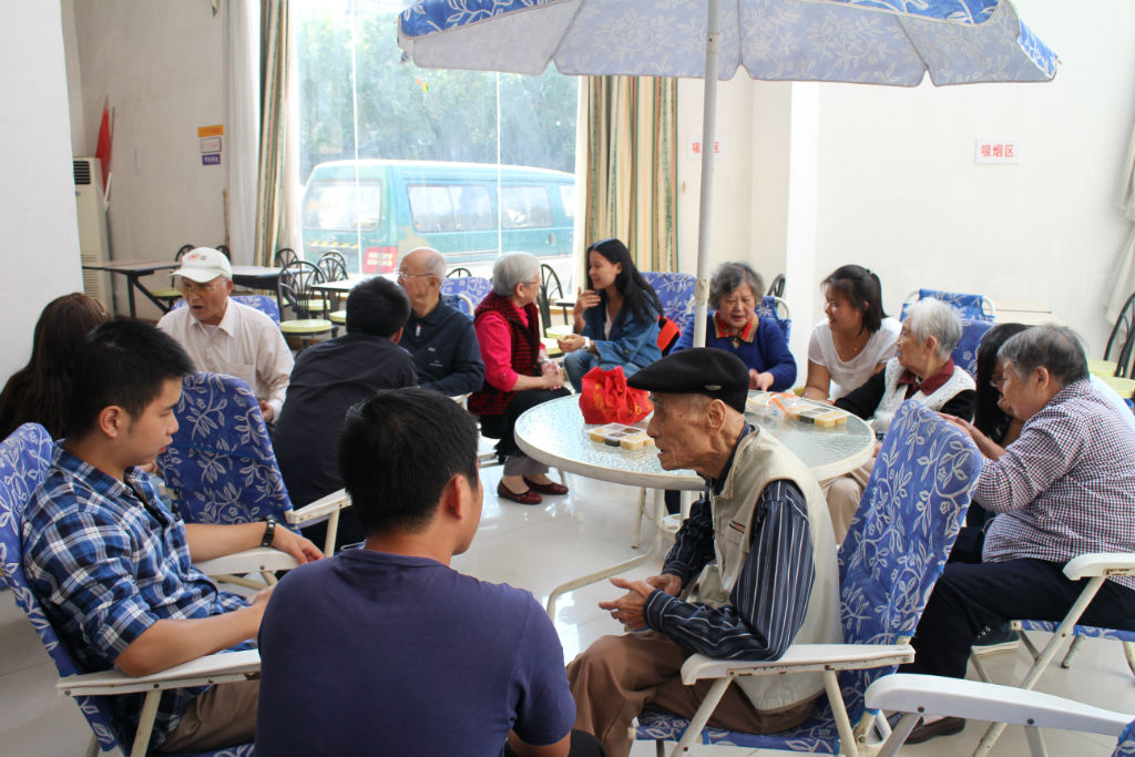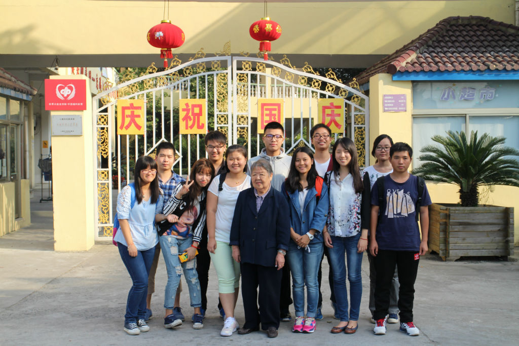 2014年10月7日下午,国际法学院志愿者来到青浦区健乐颐养院看望老人,为老人们送去重阳节的祝福。