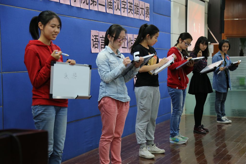 比赛赛程共分为两轮。第一轮团体赛分别由偏旁组字、看字写拼音、成语听写、格式造词和朗读短文这5个环节组成。30名参赛选手按照事先随机分组的规定互相协作,在每个环节选出了1名代表进行比拼。比赛进行最大的亮点当属在第一轮团体赛中就上演了两名同学三次同分的现象。在一题一题的加时赛中,不仅选手竞争地异常激烈,台下的选手和观众都在暗暗地琢磨题目,积极思考汉字的写法,读音等问题,甚至拿出字典进行查阅。在朗读短文环节,谢彩老师也对各位选手的朗读表现进行了详细且精彩的点评。在所有5个环节结束后,每一环节表现得分最高的选手进入到了第二轮个人PK赛中。相似的比赛题型,让晋级的5名选手又是欣喜又是紧张。两两对决的淘汰赛制也让大家期待不已冠军的最终产生。最终,由郦依婷、赵竞竞、彭莉莎、叶剑阳和沈欣雨同学组成的第四组在第一轮团体赛中脱颖而出,获得本届大赛的优秀小组奖,而本届大赛“汉字英雄”称号则由来自法律学院的彭莉莎同学摘得。