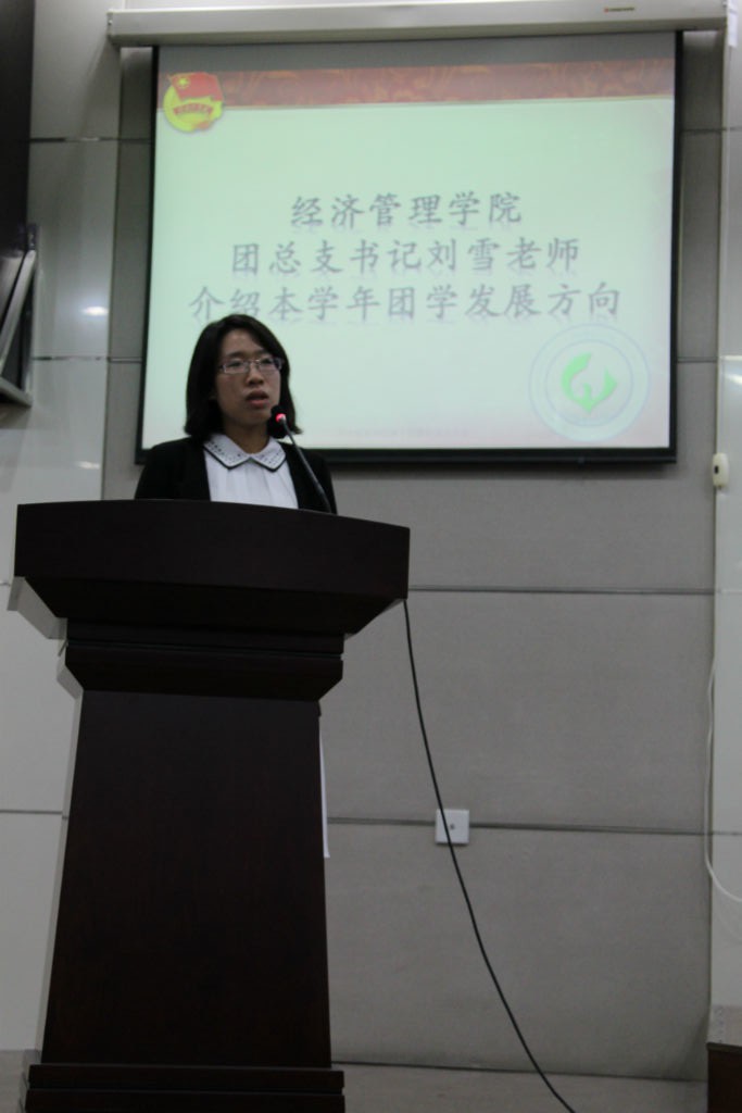 大会进入最后一项议程,由经济管理学院团总支书记刘雪老师以一句张至立同学的“在团学实现梦想”为切入点,首先强调工作学习的平衡点,而后告诉大家,要把团学当成自己的大家庭,只要大家将心往一处使,劲往一处用,就一定能克服一切困难。
