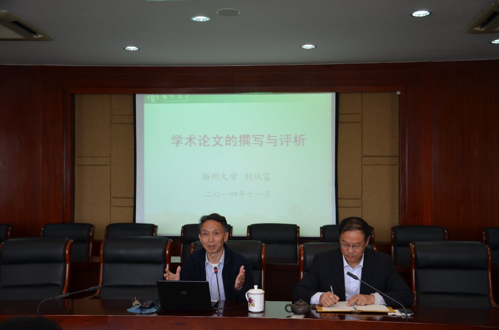 11月6日下午,“学术论文的撰写与评析”学术讲座在求实楼413会议室顺利举行。扬州大学刘从富教授担任了此次讲座的主讲嘉宾。讲座由我校张森年教授主持,我校部分本科生以及2013级部分硕士研究生参加了本次讲座。
