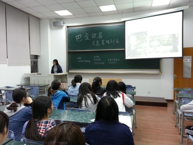 培训开始前,部长武洁钰对巴金故居项目和求索志愿者队进行了介绍,并将联系方式公布在了黑板上,希望更多的人加入到志愿者队伍中来。培训开始后,项目负责人范燕菲对巴金故居进行简单介绍,她强调了志愿者的职责和纪律,也对大家的提问进行耐心地回答。整个培训过程中,每一位志愿者都听得相当认真。培训结束后,不少同学留下了自己的联系方式,表示希望能够排上名额参加活动。