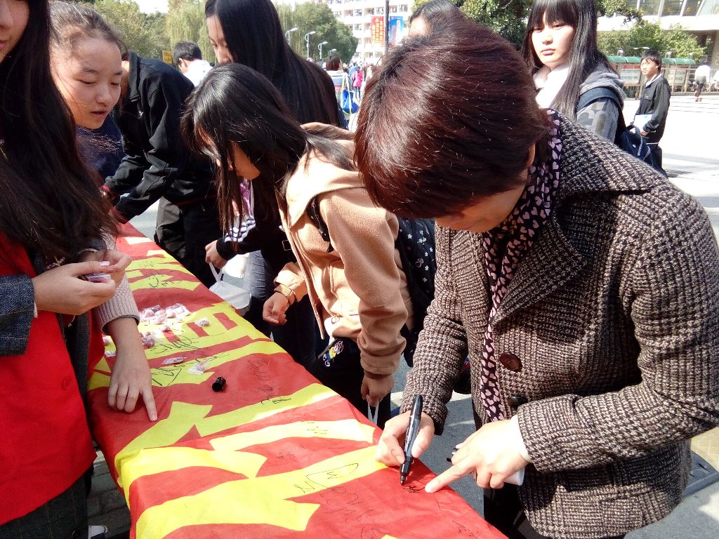 活动现场非常火爆,签名台前挤满了人,很多同学都在咨询志愿者活动的种类。活动还吸引了不少留学生的关注。