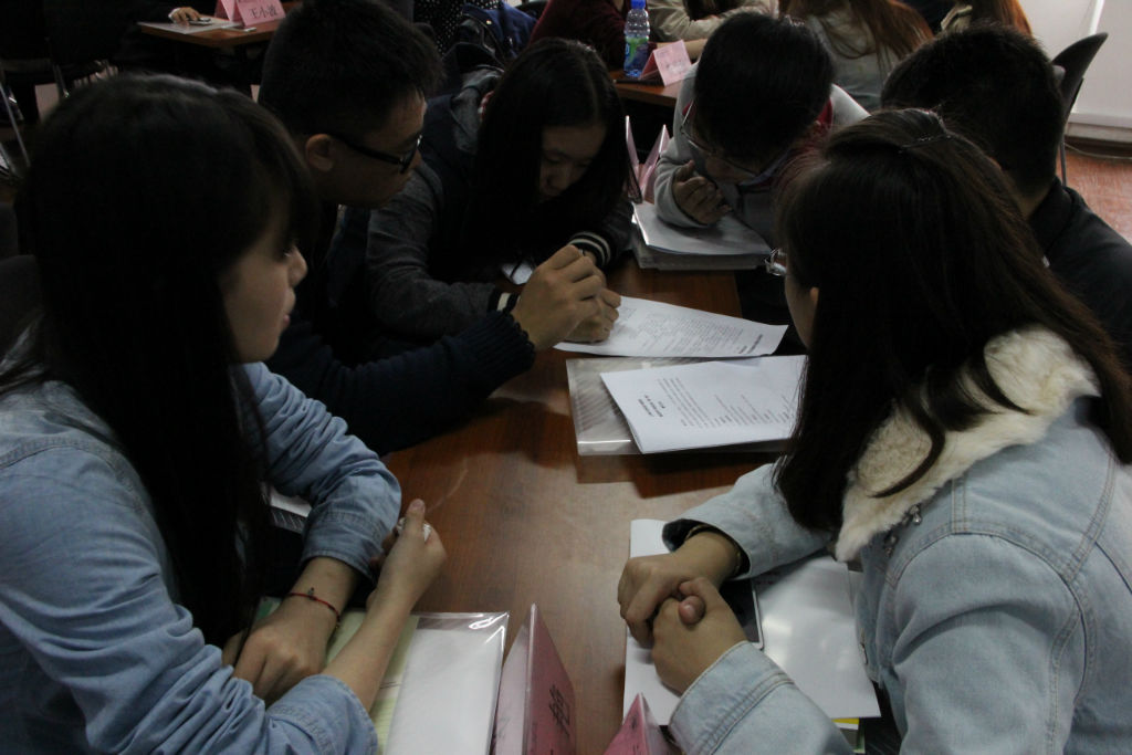 在必答题部分,各组学员组内讨论,在规定的时间内完成必答题目;台球制答题部分,各小组采取团队合作的形式群策群力完成此次竞赛环节;表达展示部分,首先由六位导师自我介绍,随后各组代表按照前两轮竞赛的排名次序依次完成对规定项目的表达阐述,展现团支书的应变能力及小组讨论成果。接着,在小组代表与导师的互选中确定本次团校培训的各小组导师。