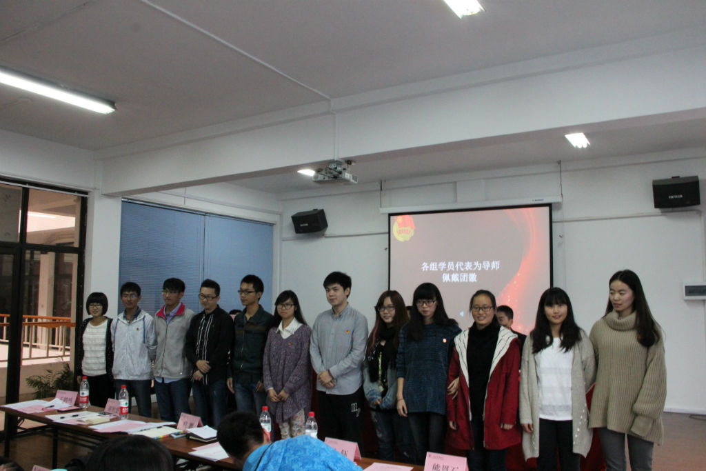 仪式在《中华人民共和国国歌》《中国共产主义青年团团歌》中拉开帷幕。校团委副书记孙留华老师首先介绍第六期团校概况,并回顾了往期团校的优秀成果,对本期成员予以厚望。接着新利18官方客服团校校长陆嵬老师为培训班授旗,第六期团校班长常露馨同学上台接旗。授旗仪式结束后,学员代表熊恩石同学上台发言,他表示入选团校是先知先觉、思想先进的体现,学员必定努力学习团校知识,不辜负校团委的期望。紧接着,各组学员代表为导师佩戴团徽。导师代表王鹤鸣上台发言,对各学员提出对以后学习的期望,希望大家在实际中真正提升自我。最后陆嵬老师进行讲话,他表示,自团校去年9月份成立以来已过去一年,校团委历来重视基础人才建设,希望大家在本次团校中能够有所收获,并对学员提出三点内容:一、知识做到学以致用,付诸实际。二、脚踏实地,心存高远。三、不断提出问题,互相交流、讨论。