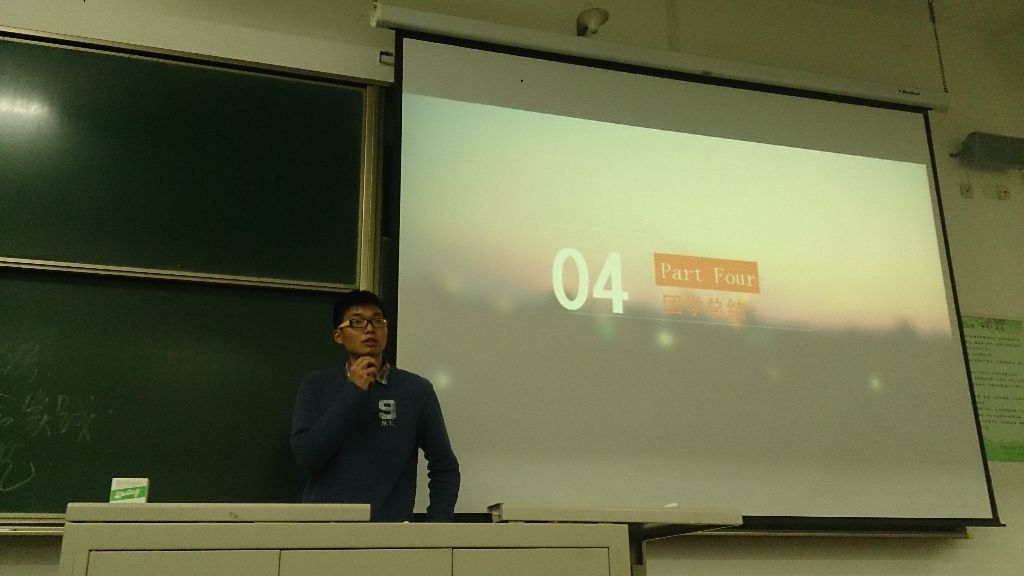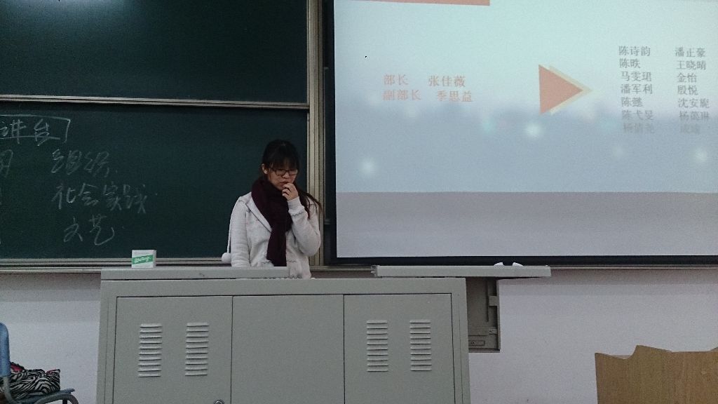 在团副宣布正式成员后,首先由社会实践部部长作工作汇报,自律委员会主任在汇报结束前对干事们提出了“不忘初心 方得始终”的劝勉,在组织部部长汇报完毕后,体育部部长用他一贯诙谐幽默的表达方式向我们展示了运动会、篮球赛、游泳比赛的精彩过程,紧接着,外联部部长一改往日的嘻哈作风,诚恳认真地阐述开学以来外联部取得的丰硕成果,之后,文艺部部长、新闻部副部长、学术部部长、宣传部副部长相继总结了各部门的工作情况。在团副展望未来、布置工作后,最后一项便是学生会主席作本次团学总结。