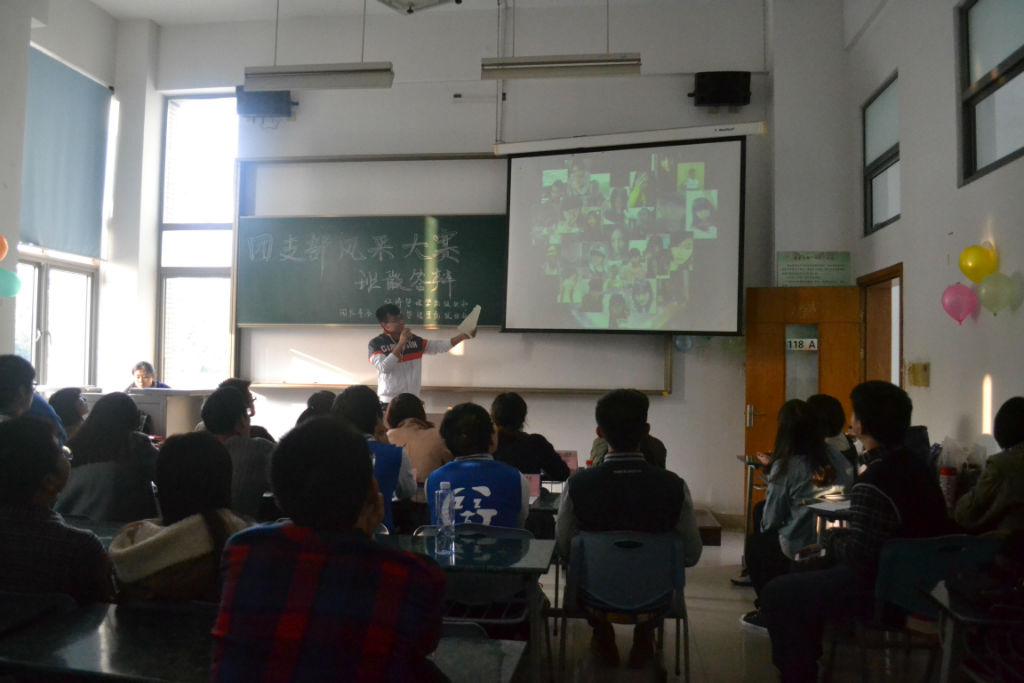 本次比赛由组织部干事熊恩石同学和储青青同学主持。经过简单的介绍参赛评委和比赛规则之后,便开始了答辩环节。每个班级的参赛代表都拿出了百分之百的用心和百分之二百的诚意来展示班级风貌。通过视频、PPT、照片海报等多种多样的形式,让我们对每一个团支部的活动有了更加全面的了解。每个班级的班徽设计都风格迥异,彰显了自己的班级特色,给大家留下了深刻印象。