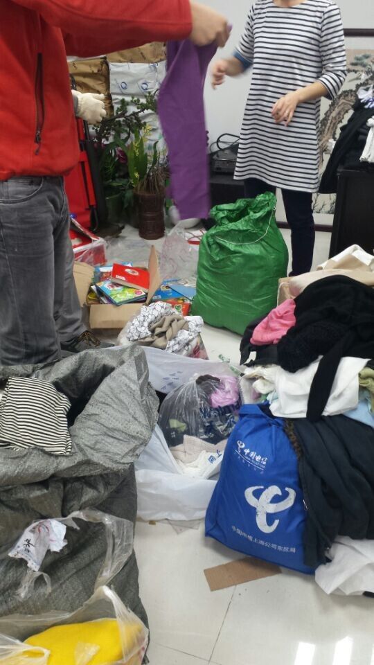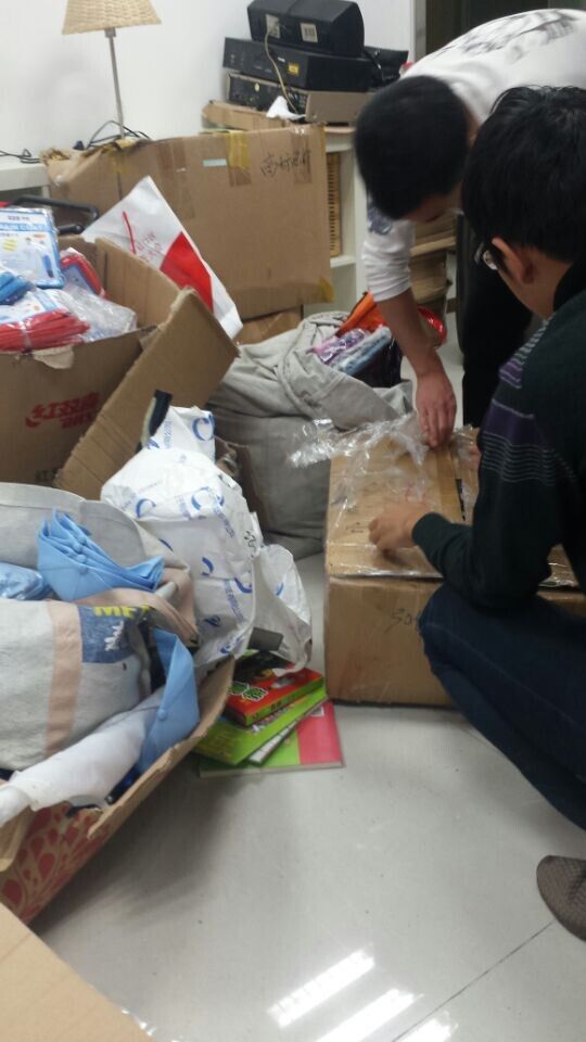 星期六的清晨,志愿者们早早便从学校出发,在到达物资打包现场后,我们发现房间地面堆满了捐赠来的衣服和书籍,杂乱无序,打包工作显得困难重重。但每一位志愿者都清楚,在这地上的每一件衣服每一本书都是源于一位位好心人的奉献。二话不说,我们的志愿者与“爱在路上”成员立马投入到紧张的工作中。在工作人员的指导下,我们依次将物资进行大人用品与小孩用品,可捐物资与不可捐物资的分类。在此过程中,也遇到了不少的困难,例如难以取舍不可捐物资,没有足够的打包箱,衣服分类的杂乱等。但这都没能放慢我们的整理速度,在经过长达四小时的整理打包后,最终完成了任务。在场的每一位志愿者虽都已气喘吁吁,但在他们的脸庞上却洋溢着快乐的笑容