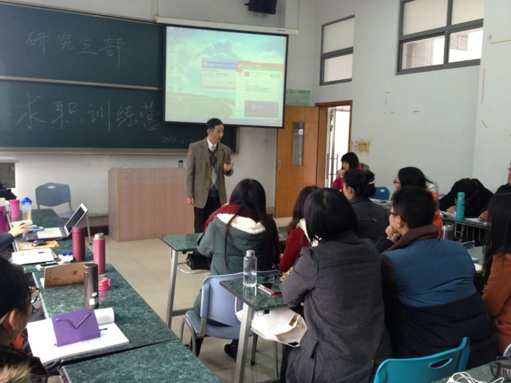 2014年12月9日,我校研究生部求职训练营二期在主教118a举行,本次求职训练继续由我校文学院谈青教授担任指导老师,部分硕士研究生参加了此次求职训练。
