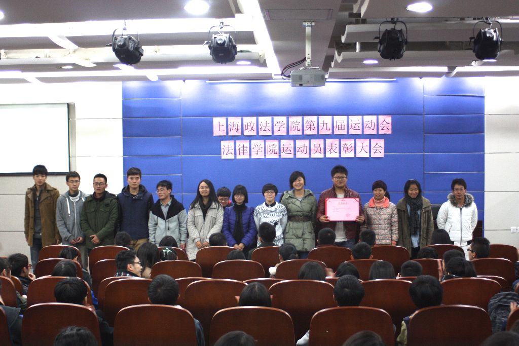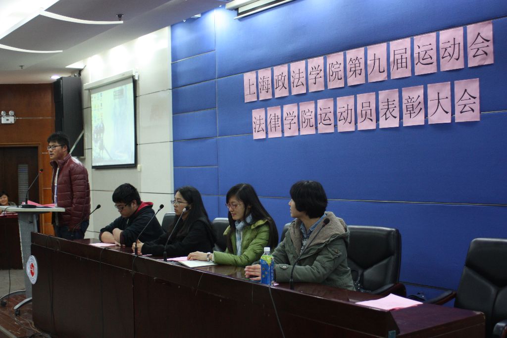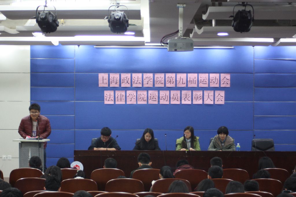 2014年12月8日晚8:00,法律学院运动员表彰大会于信教112举行。出席本次大会的有法律学院团总支书记李语熙老师、法律学院全体团学成员以及各行政班级代表,此次表彰大会由法律学院团学体育部部长金弼绥主持。