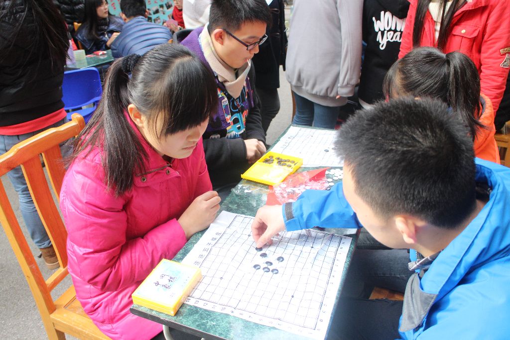 社区文化节活动分为寝室搞怪照片展和益智棋牌赛。下午一点,参加益智棋牌赛的选手便早早地来到比赛场地签到。一点半,随着宏亮的鼓点声,高职学院社区文化节开幕。在主持人的组织下,参赛同学与老师合影留念。简短的开幕式后,棋牌比赛正式开始。棋牌赛分为五子棋比赛、象棋比赛、斗地主等。同学们在棋牌桌上比拼棋艺,一决高下,每场比赛都充满火药味,参赛选手高超的棋艺吸引了许多同学的围观。象棋组决赛更是精彩,老师们也加入了比赛。主办方更是贴心地为等待比赛的选手准备了飞镖、毽子等器材,让候场也变得趣味多多。