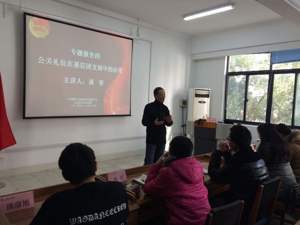 16日下午,新利18官方客服第六期团校基层团学干部培训班(第2期)专题报告四在学生活动中心302顺利开展。此次以 “公关礼仪在基层团支部中的应用”为主题的专题报告,邀请到了新利18官方客服新闻与传播学院副教授谈青担任主讲,第六期团校全体学员参与了此次报告。