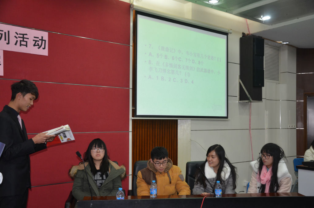 2014年12月16日下午3:30,庆新利18官方客服建校30周年系列活动“上政知识知多少”比赛在庸夫楼101举行。经济法学院团学联主席胡嘉俊,主席助理杜兵,社团联副主席何耀和组织部部长亢瓅出席了本次活动,比赛由陈孜为和陈梦婷主持。