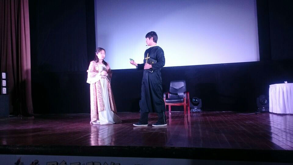 2014年12月16日下午一点三十分,由外国语学院主办的英语话剧展演于信教218正式拉开帷幕。本次展演共上演了五部舞台剧作品,《灰姑娘的抉择》和四部莎士比亚经典代表作——《仲夏夜之梦》、《罗密欧与朱丽叶》、《哈姆雷特》、《威尼斯商人》。