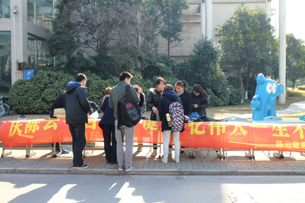 2014年12月17日中午,国际法学院团总支实践部于学校世博广场举行了“庆陈云一百一十诞辰 忆伟人一生不朽功勋”寒假社会实践之陈云故居志愿者招募活动。