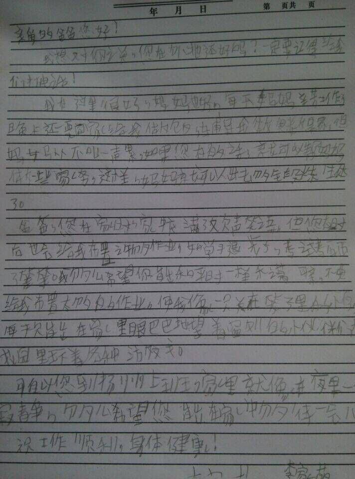 活动中,我们发现,这些留守儿童及家人都非常乐于和我们交流。尤其是长期和爷爷奶奶生活在一起的留守儿童,一开始稍显羞涩,在志愿者的开导下,慢慢变得开朗,甚至毫无抵触地把心里话说给志愿者听。在志愿者的指导下,留守儿童写下一封封饱含着思念和牵挂的家信。这些信件会由志愿者寄出。志愿者还为他们拍下照片和视频,这些照片和视频将由志愿者传给在留在上海的志愿者,由他们亲手交给这些孩子的父母。